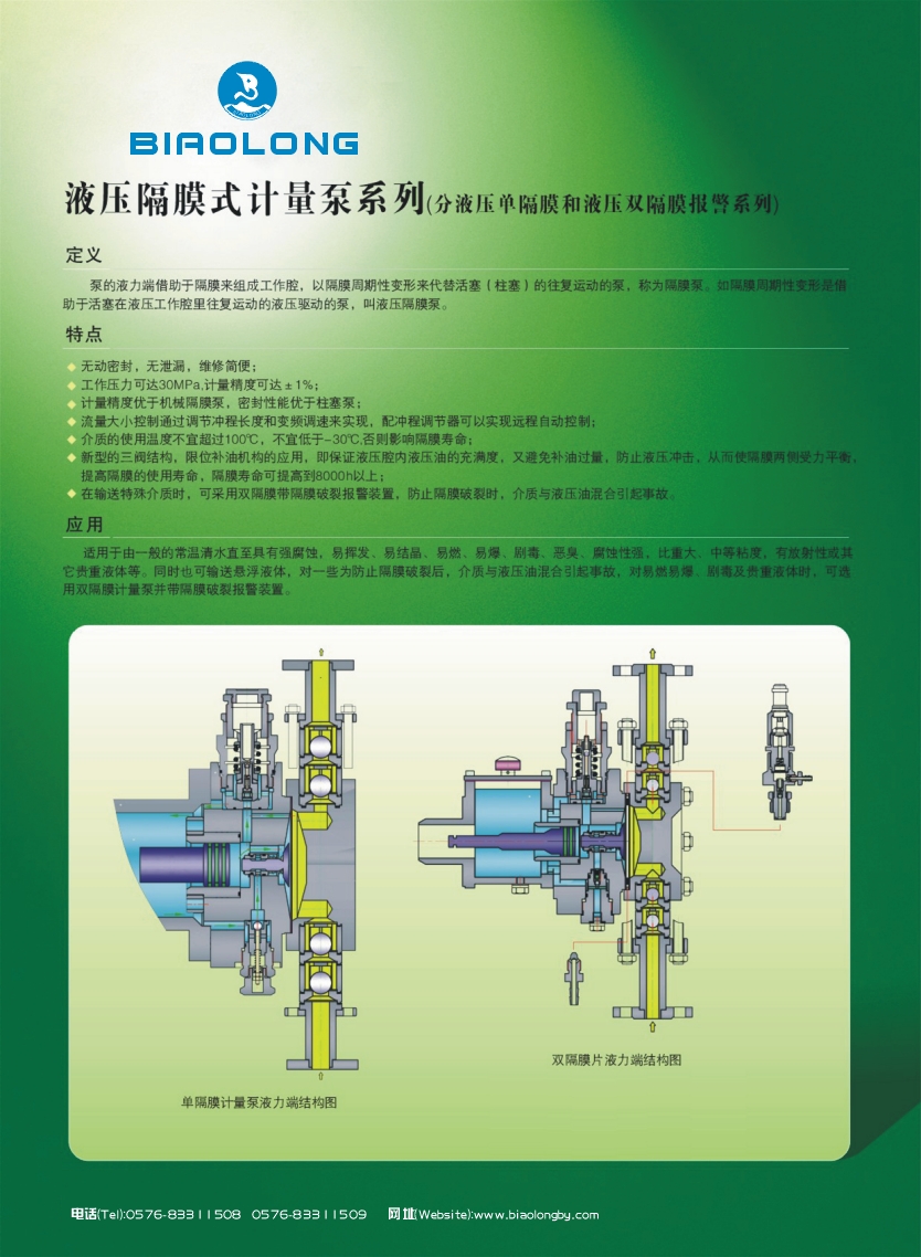 液壓隔(gé)膜計量(liàng)泵也叫(jiao)柱塞隔(ge)膜計量(liàng)泵,是結(jie)合柱⭕塞(sai)式🌂計量(liàng)🔆泵和隔(gé)膜式計(ji)量泵的(de)特點而(er)設計的(de)一種計(jì)㊙️量泵。該(gāi)計量泵(bèng)與被計(ji)量介質(zhì)介質接(jiē)觸部分(fen)🌂為隔膜(mo),而驅動(dòng)部分為(wei)液壓柱(zhù)塞。由于(yú)隔膜根(gēn)據被計(jì)量介質(zhì)的不同(tóng)可選用(yong)不同的(de)材質,如(rú)海波隆(lóng)(CSM)、氟💋化橡(xiang)膠(FPM)、泰氟(fu)隆(PTFE)等,而(er)液壓驅(qu)動可實(shí)現高壓(yā)計量的(de)需要,所(suo)以柱塞(sāi)隔膜計(ji)量泵的(de)使用領(ling)域和工(gong)礦壓🛀力(lì)大大提(tí)高。